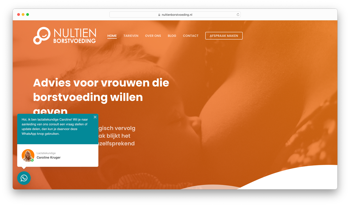 Ontwerp huisstijl, logo en afspraken website voor Nultien Borstvoeding voor advies en hulp voor vrouwen die borstvoeding willen geven.